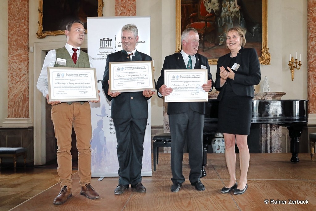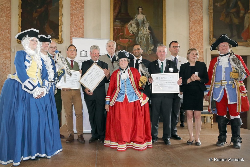 Den Festvortrag hielt Frau Dr. Ringbeck, tätig im Außenministerium unter anderem als Koordinatorin der Kulturkonventionen der UNESCO. Sie überreichte die Urkunde über die Anerkennung vor einem begeisterten Publikum an die drei beteiligten Falknerverbände.