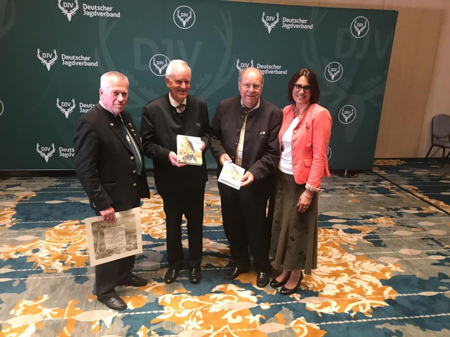 Überreicht bekam er die Anerkennung von Dr. Volker Böhning, dem frisch gewählten Präsidenten des Deutscher Jagdverband e.V. im Beisein des scheidenden DJV-Präsidenten Hartwig Fischer und unserer Vorsitzenden Elisabeth Leix.