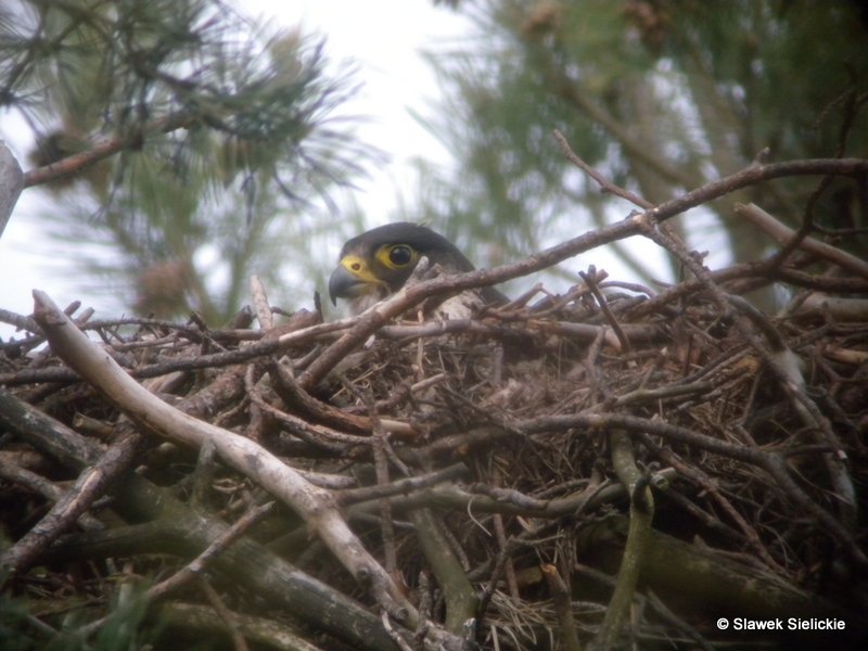Nach über 20 Jahren Auswilderung in Polen konnte endlich der erste Wanderfalke im Baumhorst zweifelsfrei bestätigt werden. Der Ornithologe Piotr Adamiok, Mitglied im Komitee für Adlerschutz, welcher jedes Jahr Seeadlerhorste kontrolliert, hatte den Falken bei der zweiten Kontrolle eines Seeadlerhorstes entdeckt. Am 22/23.04.2012 gelang es Slawek Sielickie den weiblichen Wanderfalken brütend auf den Eiern zu fotografieren und den Terzel in Horstnähe zu bestätigen. Ob die Falken beringt sind, kann im Moment noch nicht gesagt werden, allerdings hoffen die Polen dies während der Jungenaufzucht feststellen zu können.
