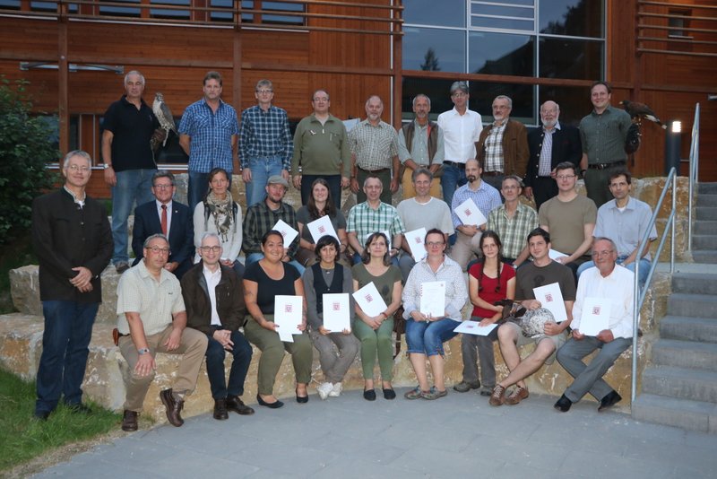 Im August dieses Jahres hat die erste Falknerprüfung in Hessen im Bildungszentrum von Hessen-Forst in Weilburg stattgefunden. Am Abend erhielten 14 von 15 Kandidaten Ihre Urkunden vom Prüfungsvorsitzenden Dr. Orlik Frank überreicht, feierlich eingerahmt von den Glückwünschen des Leiters der Obersten Jagdbehörde Hessen, Herrn Karl Apel und den Landesvorsitzenden der Falknerverbände Berthold Geis (ODF) und Dominik Fischer (DFO).